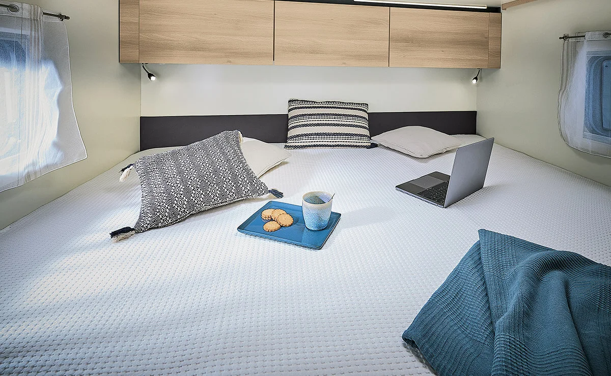 Представяме Ви полуинтегрирания кемпер Itineo Cozi PJ700 – идеален за приключения! С 2 спални места (по избор +2+1 спални места) и просторно XXL легло. По желание добавете още едно седящо регистрирано място. Насладете се на приключенията си с Itineo Cozi PJ700!