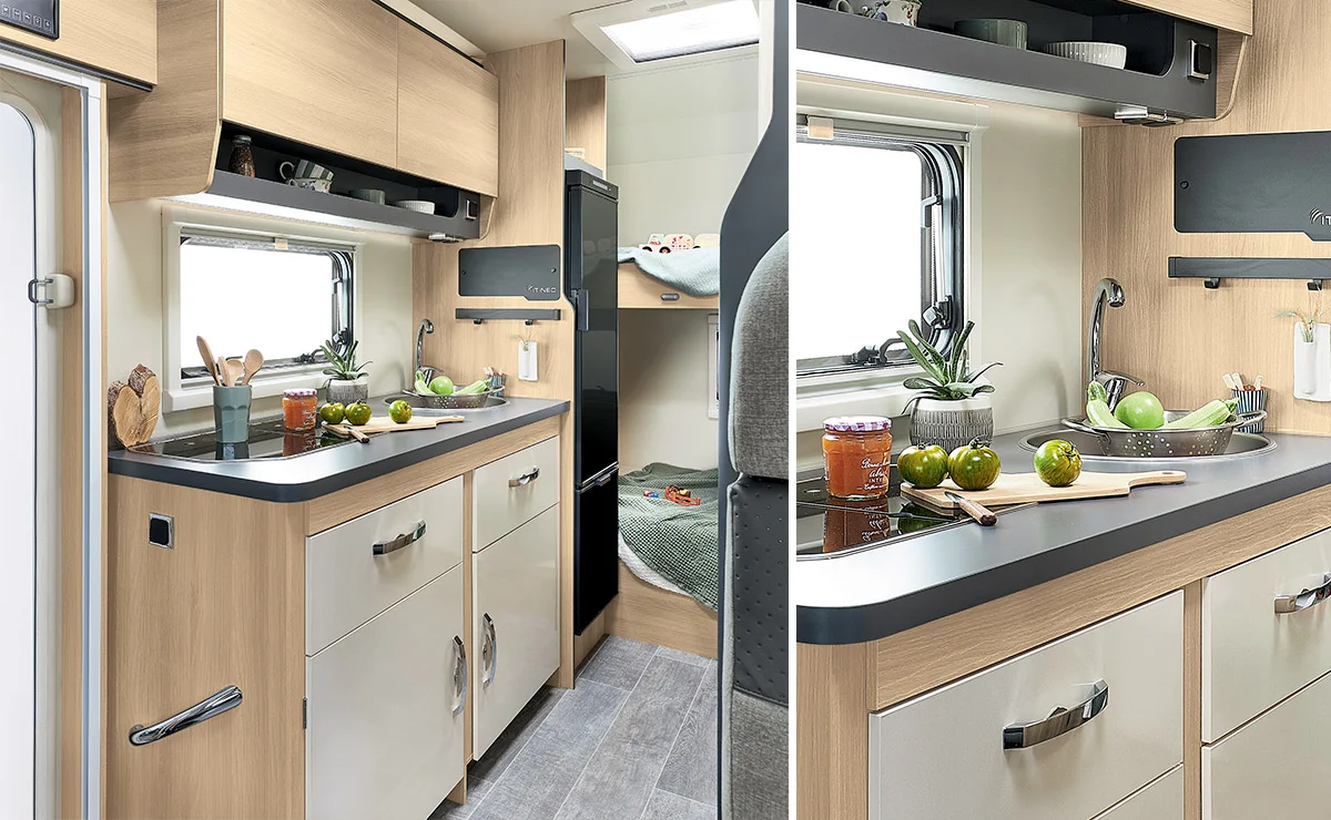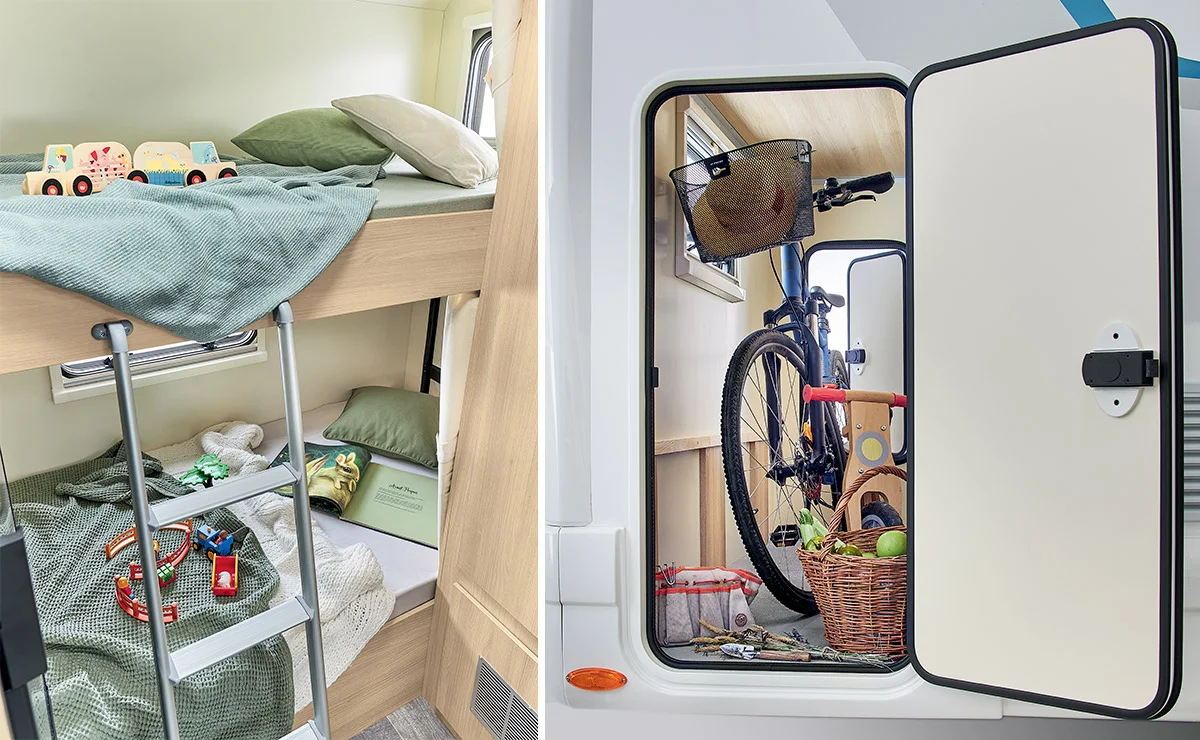 Домът на колела PS700 с превозно средство FORD (130 HP) предлага просторно жилищно пространство с гъвкаво преобразуване на седалката. Комфортно оборудван е с 6 легла, голям хладилник и практичен гараж. Налична е система за закрепване ISOFIX. Моля, обърнете внимание, че не е съвместим с 5-та одобрена седалка и 6-та одобрена опция за седалка. Котлонът има 2 пламъка стандартно, 3 пламъка са по избор.